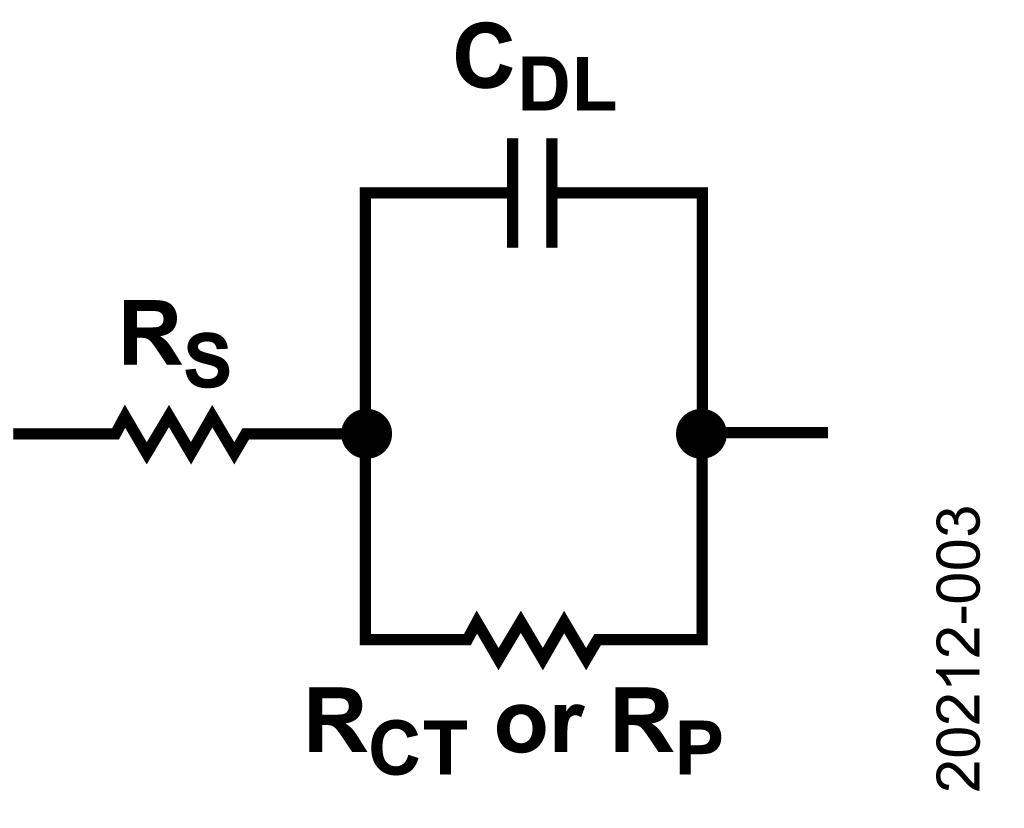 The Randel circuit is the most common ECM. The Randel circuit includes an electrolyte resistance (RS), a double layer capacitor (CDL), and a charge transfer resistance (RCT). The double-layer capacitance is in parallel with the charge-transfer resistance, which creates a semicircle simulation shape.