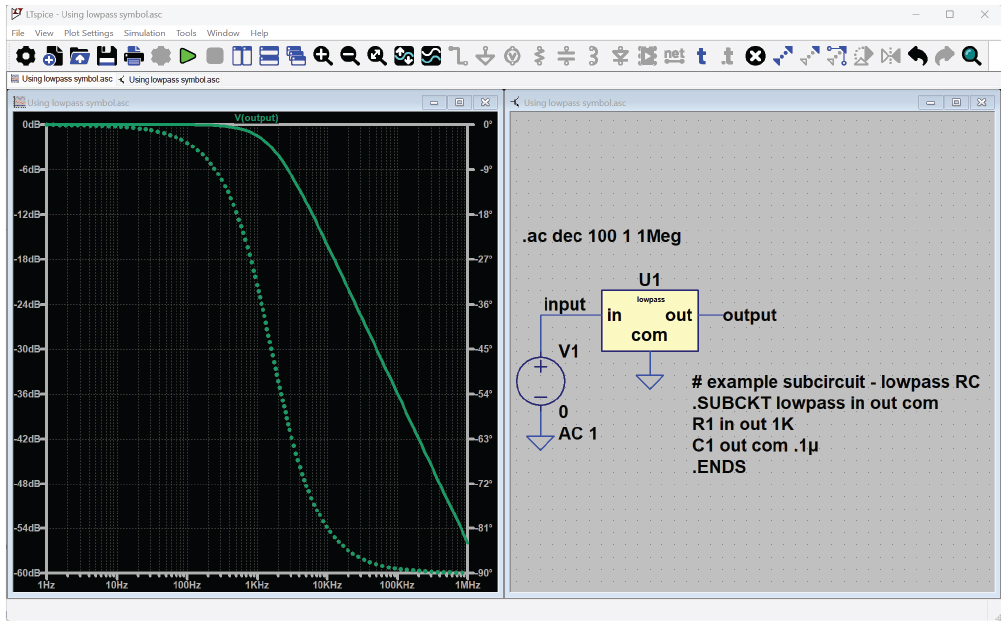 If a .SUBCKT model is not a good fit for an existing symbol, you can use LTspice to autogenerate a new symbol to go along with the subcircuit. LPF.cir is provided in the resources as a simple example. See Figure 8.