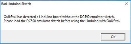 原因之一是在上传 DC590_emulator.ino 代码时,在 Arduino IDE 上选择了错误的目标板。要使用 Linduino,在上传代码之前,必须从“工具”-->“电路板”中选择 ’Arduino Uno’ 选项。