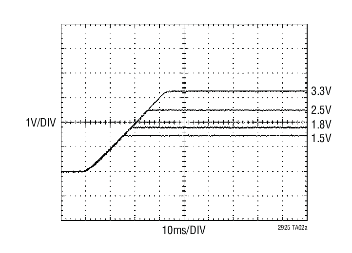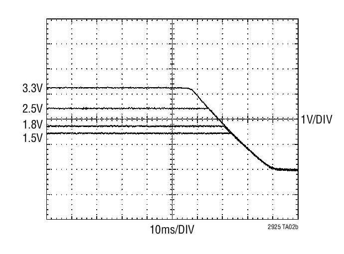 LTC®2925 提供了一款适合电源跟踪和排序要求的简单解决方案。通过选择几个电阻器,即可把电源配置成同时斜坡上升和下降或配合电压偏移、延时或不同的斜坡速率。
