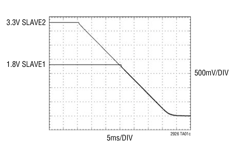 LTC®2926 提供了一款可对多达三个电源轨进行跟踪和排序的简单解决方案。每个通道一个N 沟道 MOSFET 和少量的电阻器可把负载电压电源配置成同时斜坡上升和下降,或配合电压偏移、延时或不同的斜坡速率。