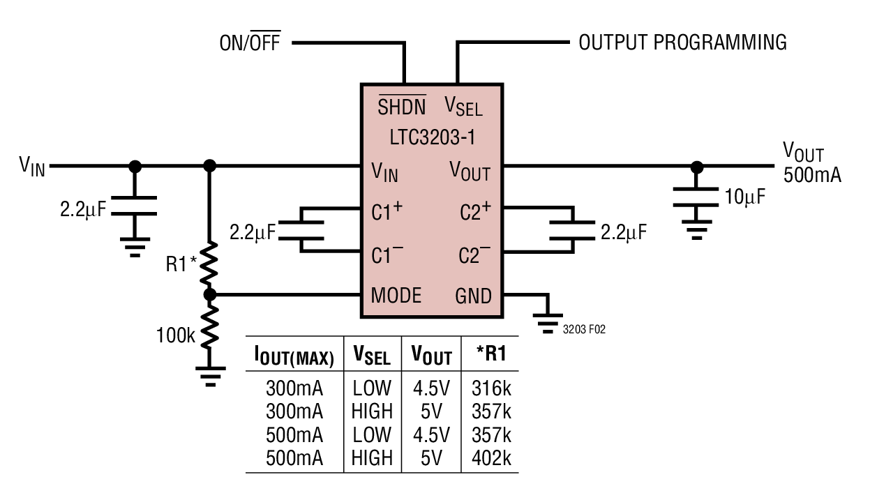- LTC3203B Demo Circuit - 500mA Output Current Low Noise Dual Mode Step-up Charge Pump (2.7-5.5V to 3.3V @ 500mA)