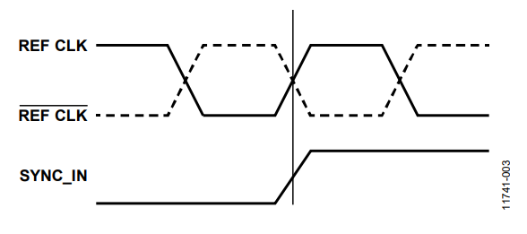 - 使用寄存器0x1B中的可编程SYNC_OUT延迟位,并对该位进行调整,以便更好地对齐主芯片器件的SYNC_IN上升沿和REF CLK信号(如图3所示)。