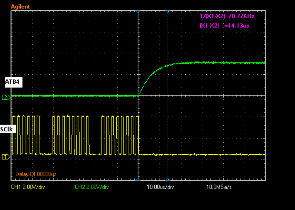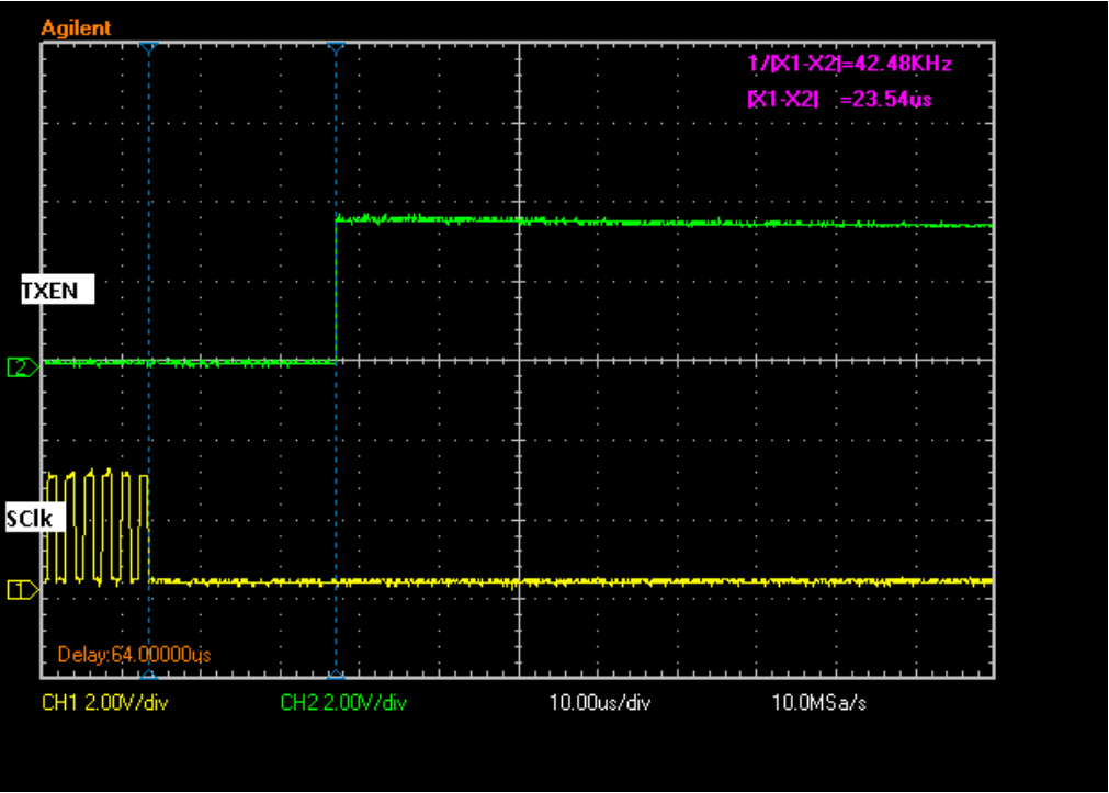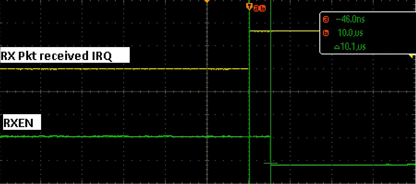 Figure 7. Time from RC_RX Command Write (Last SCLK Edge) to RXEN High with mac_delay timer Set to 192 µs.