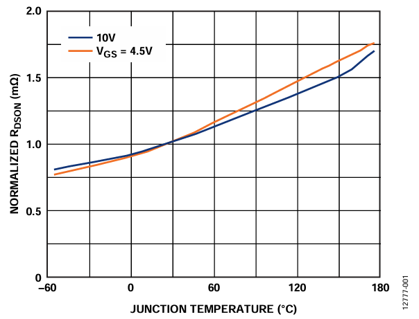 After selecting a suitable MOSFET, quantify the RDSON temperature derate required. There is typically a graph of RDSON vs. TJ in the MOSFET data sheet. An example of normalized RDSON vs. TJ is shown in Figure 1.