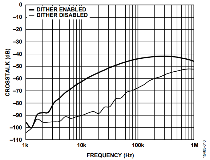 Figure 6. Dither enable or disable in adjacent channel, crosstalk