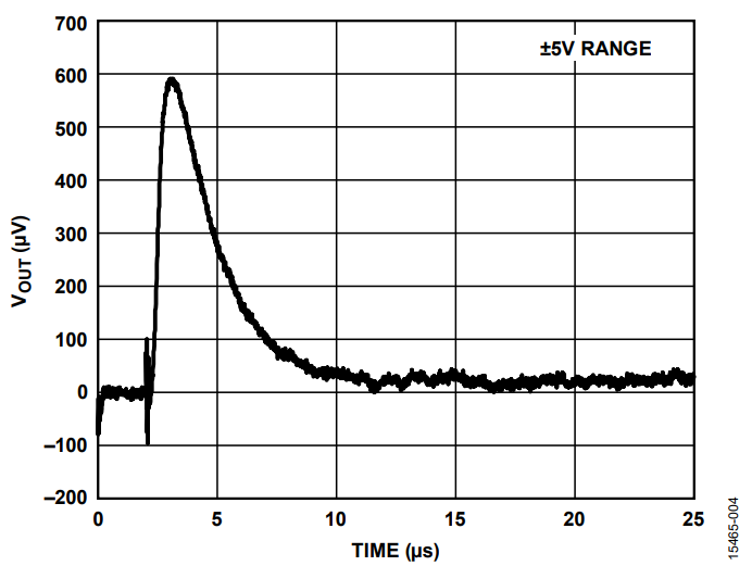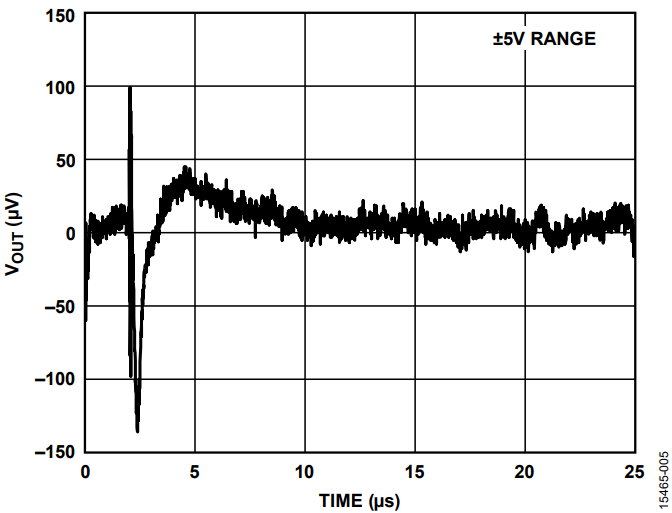 In addition, some fast transients can be observed in the nonselected DAC output due to coupling between internal digital lines, as shown in Figure 6.