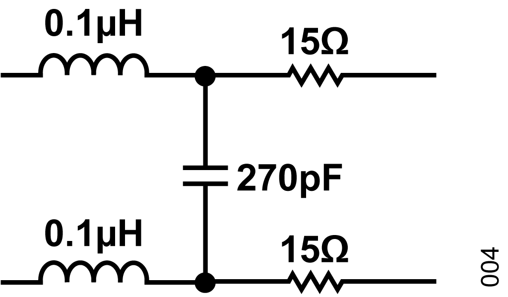 A total of five anti-aliasing filters were tested in the system. The first three anti-aliasing filters tested were differential RC types, shown in Figure 2. Filter 1 had R = 33 Ω and C = 18 pF. This created a low pass corner of approximately 134 MHz.