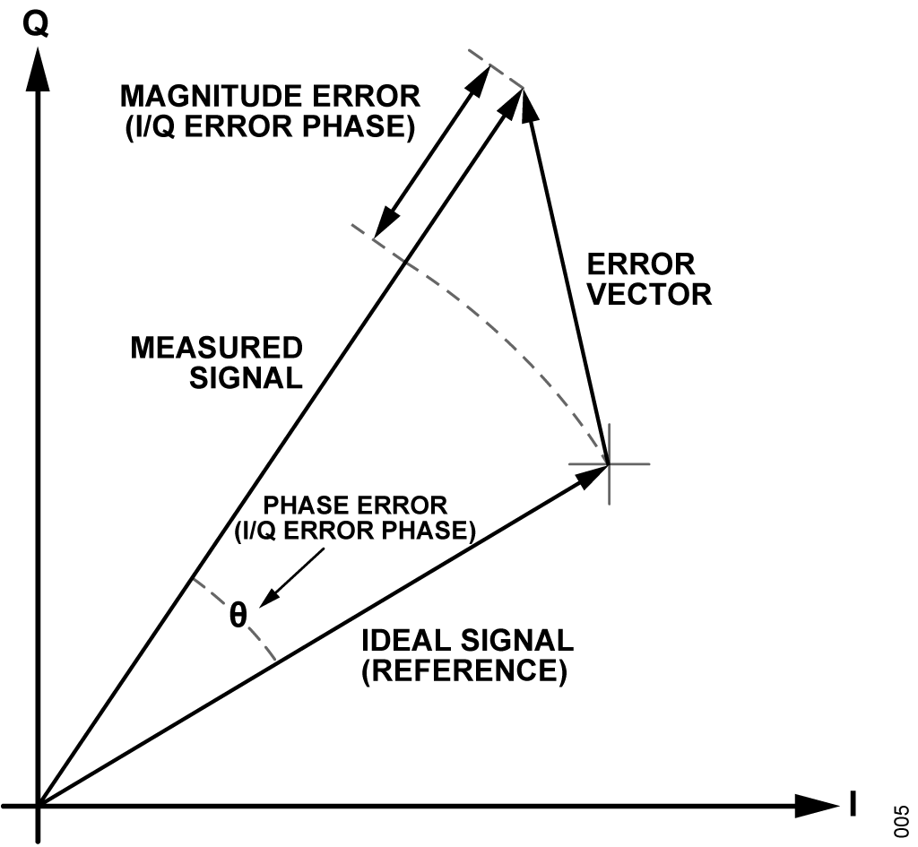 EVM is a measure of the quality of the performance of a digital transmitter or receiver and is a measure of the deviation of the actual constellation points from their ideal locations, due to both magnitude and phase errors as shown in Figure 5.