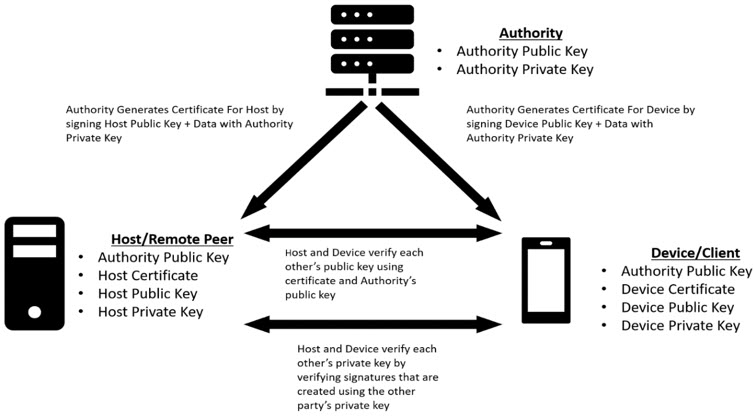 - Authority: Known as the third-party/certificate authority. This is a trusted party that provides certificates to both the host and device to verify one another.