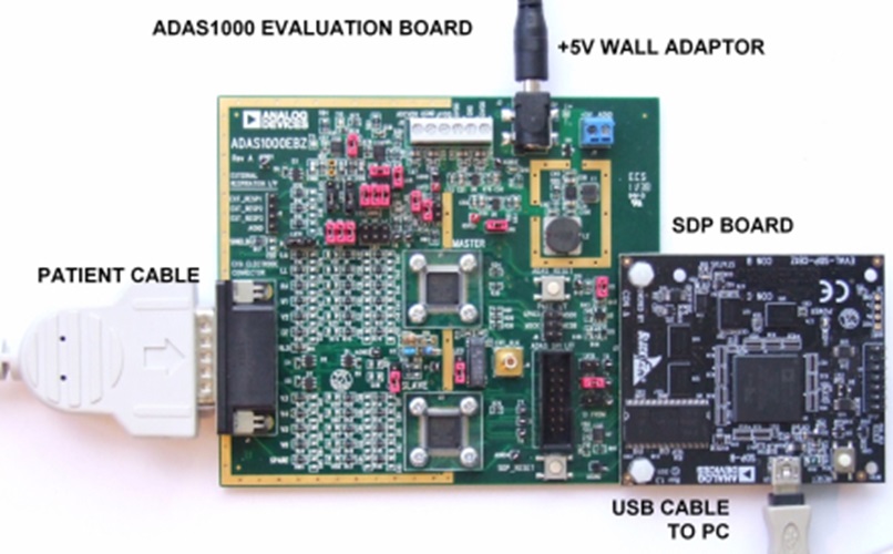 EVAL-ADAS1000SDZ是用于ADAS1000的全功能评估套件。评估套件包含评估板,配备2个ADAS1000器件,能够展示最高12引脚的ECG捕捉。套件内包含医用级+5V壁式适配器,配备全球可互换的壁式插头,附带CD中有用于数据捕捉和显示的用户软件。此软件可控制ADAS1000寄存器,能够捕捉并显示ECG数据、呼吸数据,检测脉搏并存储数据供脱机处理。该评估板仅用于硅芯片评估,不能直接连接至动物或人体。此评估板与系统开发平台(SDP)一起使用,或者可通过专用串行接口连接器(J4)直接与SDP接口。SDP控制器板通过USB 2.0连接至PC。评估板连接至SDP控制器板。ADAS1000评估板无法直接连接至PC。在PC上运行的评估软件通过SDP控制器板与评估板通信。SDP控制器板在以下订购指南中单独列出(EVAL-SDP-CB1Z)。如果以前未购买过SDP控制器板,请购买该产品以确保获得完整的评估设置。系统需求