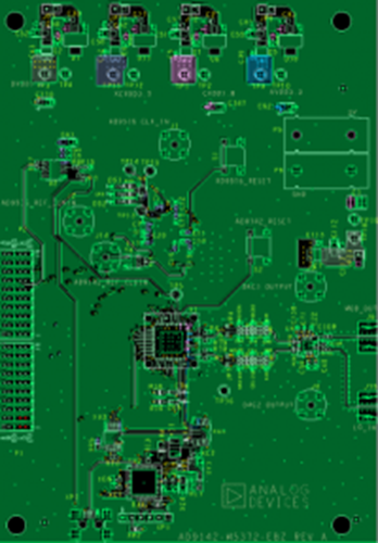 AD9142-M5372-EBZ连接DPG2后,可用于快速评估AD9142——一款高速信号处理数模转换器(DAC)。DPG2自动格式化数据并发送至AD9142-M5372-EBZ,简化器件评估。评估板(EVB)采用+5V电源供电。该EVB集成时钟分配芯片AD9516,用作DACCLK、REFCLK和DPG2输入时钟的时钟扇出和分频器。该EVB还集成了正交调制器ADL5372,用于快速DAC+IQMOD评估。图2为AD9142-M5372-EBZ的俯视图。文档