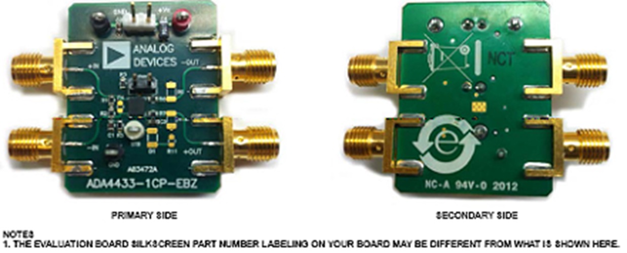 ADA4433-1BCP-EBZ评估板配置为驱动后部端接的150 Ω差分负载。 串联后部端接电阻(每个37.5 Ω)安装在两个输出端。 它们可以更改以匹配实际差分负载阻抗。