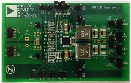 ADP2311评估板是完整的双通道、1 A降压稳压器解决方案,用户可采用近乎理想的印刷电路板(PCB)布局来评估ADP2311的性能。