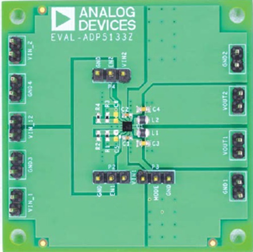 描述评估ADP5133的硬件,包含详细原理图以及PCB布局。 ADP5133提供16引脚、2mm x 2mm WLCSP封装。ADP5133评估板可评估双通道降压调节器ADP5133。 该评估板提供标准电压选项。