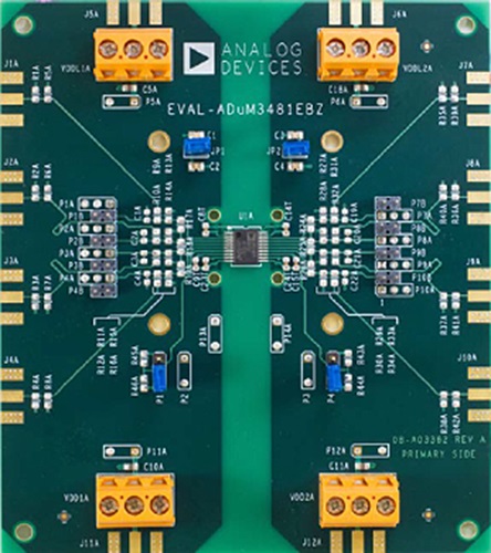 EVAL-ADuM3481EBZ支持3750 V隔离额定值、4通道iCoupler®隔离器ADuM3480/ADuM3481/ADuM3482。 该评估板提供JEDEC标准20引脚SSOP焊盘布局,支持信号扇出和回送,以及较优旁路电容。 信号可连接至电路板,也可通过边缘安装型SMA连接器(单独出售)或端子板连接电路板,实现电源连接。 电路板集成200密耳接头位置,可兼容Tektronix有源探头。该板遵循印刷电路板(PCB)的4层板较佳设计实践,隔离栅两侧分别集成全电源和接地层。 该板没有其他抗电磁辐射或削减噪声的设计特性。 在高的工作速度下,或者需要超低辐射时,请参考AN-1109应用笔记,了解其他电路板布局技巧。