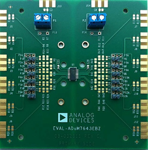 EVAL-ADuM7643EBZ支持1 kV、6通道iCoupler®隔离器ADuM7640、ADuM7641、ADuM7642和ADuM7643。 该评估板提供JEDEC标准20引脚QSOP焊盘布局,支持信号扇出和回送,以及较优旁路电容。 信号可连接至电路板,也可通过边缘安装型SMA连接器(单独出售)或端子板连接电路板,实现电源连接。 电路板集成200密耳接头位置,可兼容Tektronix有源探头。该板遵循印刷电路板(PCB)的4层板较佳设计实践,隔离栅两侧分别集成全电源和接地层。 该板没有其他抗电磁辐射或削减噪声的设计特性。 在高的工作速度下,或者需要超低辐射时,请参考AN-1109应用笔记,了解其他电路板布局技巧。