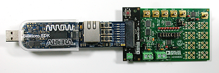 使用BeMicro SDK/SDP转接板,Arrow的BeMicro SDK平台可以轻松连接至 ADI系统演示平台(SDP)系列的各种子板。SDP子板涵盖了ADI领先的模拟、混合信号以及RF产品器件评估板和Circuits from the Lab ™实验室电路评估板。BeMicro SDK是一款完整的软核嵌入式处理器评估系统,由Arrow与Altera合作开发。该系统包含一个高速Altera Nios II处理器,配合基于Eclipse的集成设计环境(IDE)。