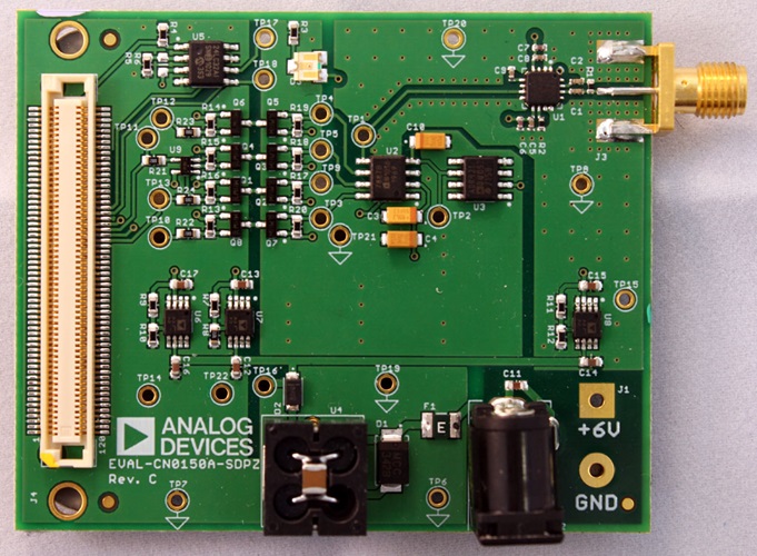 本电路使用EVAL-CN0150A-SDPZ电路板和EVAL-SDP-CB1Z系统演示平台(SDP)评估板。这两片板具有120引脚的对接连接器,可以快速完成设置并评估电路性能。EVAL-CN0150A-SDPZ板包含待评估电路,如本笔记所述。SDP评估板与CN0150A评估软件一起使用,可从EVAL-CN0150A-SDPZ电路板获取数据。