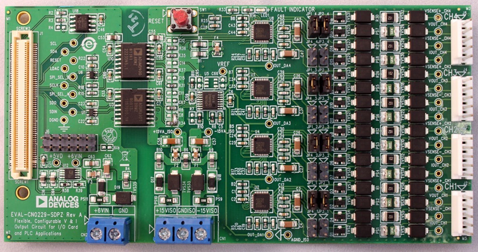 - EVAL-CN0229-SDPZ ($101.65) 4-Channel, Flexible, Configurable, Voltage, and Current Output Circuit for I/O Card and PLC Applications