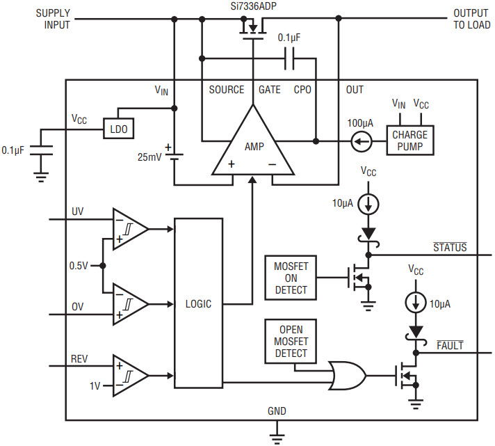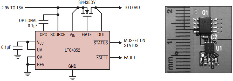 The LTC4352 goes above and beyond the functionality of a diode by incorporating input undervoltage and overvoltage protection, outputs to report status and fault information, open MOSFET detection, and the ability to allow reverse current.