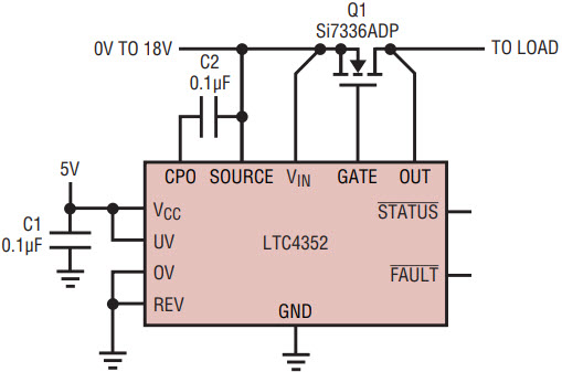 0V to 18V Ideal Diode Controller Saves Watts and Space over Schottky