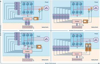 有多种高等级因素会影响特定驱动中的隔离要求和架构,这些因素包括:电机驱动性能等级、通信接口的复杂性、控制器架构以及系统内的电压水平,如图1所示。