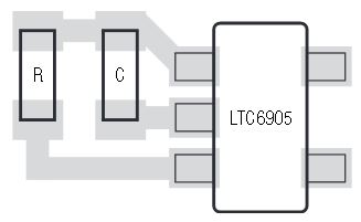 Figure 2. LTC6905 Suggested layout. Note that the bypass capacitor is located adjacent to the device and on the same side of the PC board.