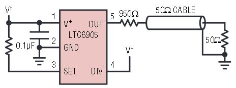 Figure 4. The LTC6905 can drive a 50Ω cable with appropriate termination.