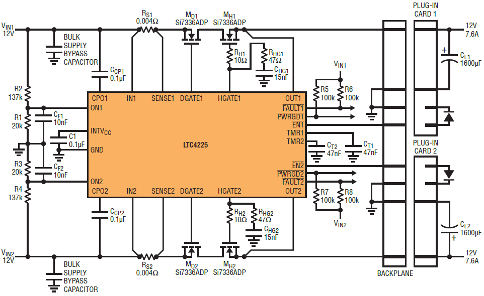 Figure 8. Plug-in card IN1 supply controls the IN2 supply turn-on via D20N of LTC4227.