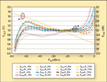 The fact that logarithmic subtraction is equivalent to division makes it easy to perform the complicated math of signal division, one important reason for selecting log amps for VSWR detection. For VSWR measurements using log amps, both detectors should be on the same chip to provide good matching for temperature and process variations. Log amps also have greater dynamic range than other detector types. All of this shows that the best detection method to use for VSWR applications is a dual log amp with high dynamic range and good accuracy over temperature.