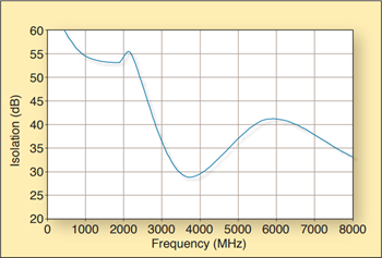 Accuracy of the detection method will determine the accuracy of the VSWR measurement. The accuracy of the output used to detect the incident and reflected waves is degraded due to the coupling between the two channels, especially when the two channels are operating at different power levels. This implies that isolation is one of the primary criteria in detector selection. This isolation criterion is twofold: isolation between the two RF channel inputs, and isolation from one RF channel’s input to the other RF channel’s output. Isolation between the two inputs can be easily measured using a network analyzer, but input-to-output isolation is more important. Input-to-output isolation is measured by increasing the power level on one channel until it starts to affect the power detection accuracy of the other channel (at a much lower power level within its dynamic range) by 1 dB. The difference between the two power levels is the input-to-output isolation. Different valued couplers and attenuators can be used to position the power levels for a minimal difference at the inputs in order to reduce coupling. Coupling on the PC board also affects isolation. Care should be taken in the layout to isolate the RF inputs from each other.