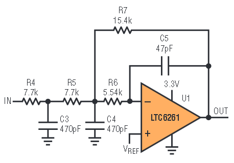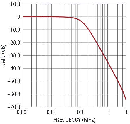 Ample bandwidth and low supply current enable deployment of active filters in portable and other low power applications. For instance, a second order Bessel filter, shown in Figure 11, provides a clean transient response at the expense of a less steep roll-off in the frequency domain.