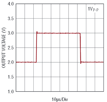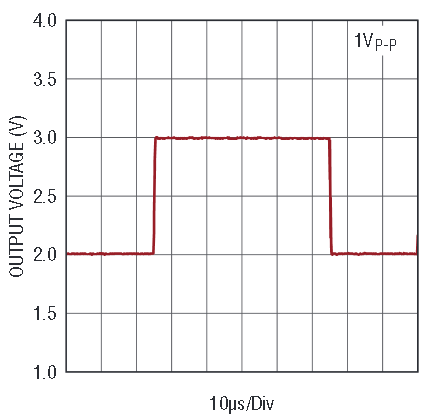 The frequency response (Figure 12) shows an expected roll-off of two poles along with a gentle droop near the 3dB point; the transient response is very clean, as shown in Figure 13.