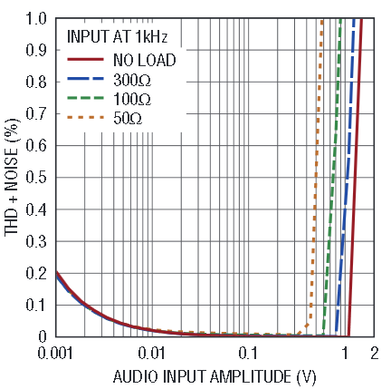 Figure 19. LTC6262 bridge driver THD and noise with different loads vs amplitude at 1kHz.