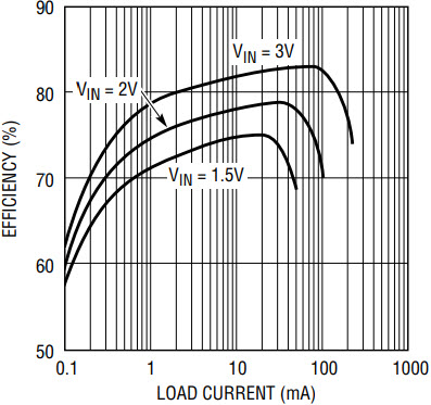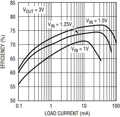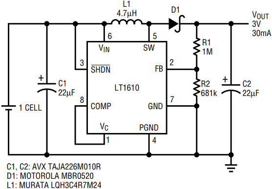 Figure 1. Single cell to 3V converter delivers 30mA.