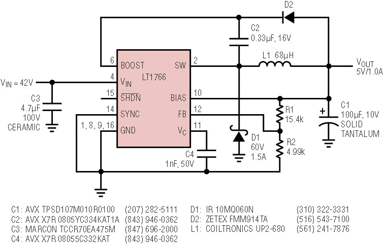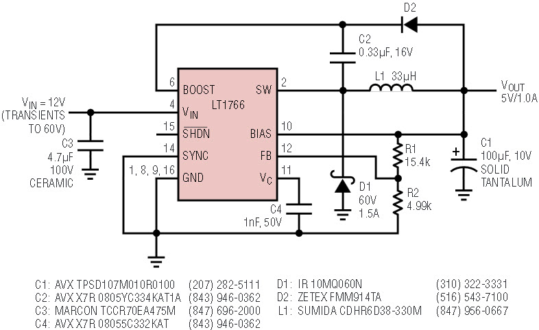 LT1766: 1.5A Converter Runs Directly from 60V DC