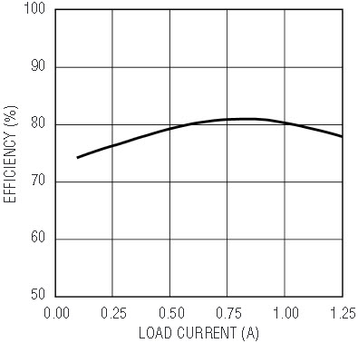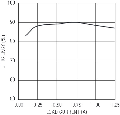 Figure 3b. Efficiency vs load current for Figure 3a’s circuit.