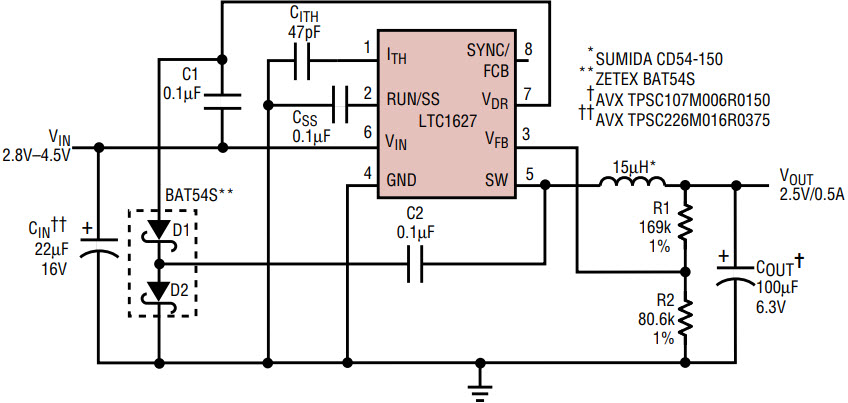 Figure 8. Single lithium-ion to 2.5V/0.5A regulator.