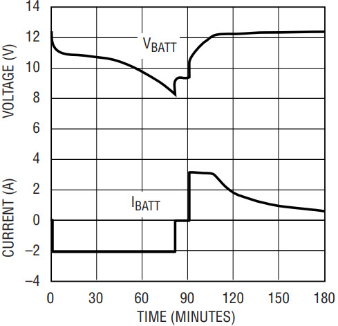 Figure 15 shows a typical discharge and charge cycle for a 10.8V, 4A-hour Li-Ion battery.