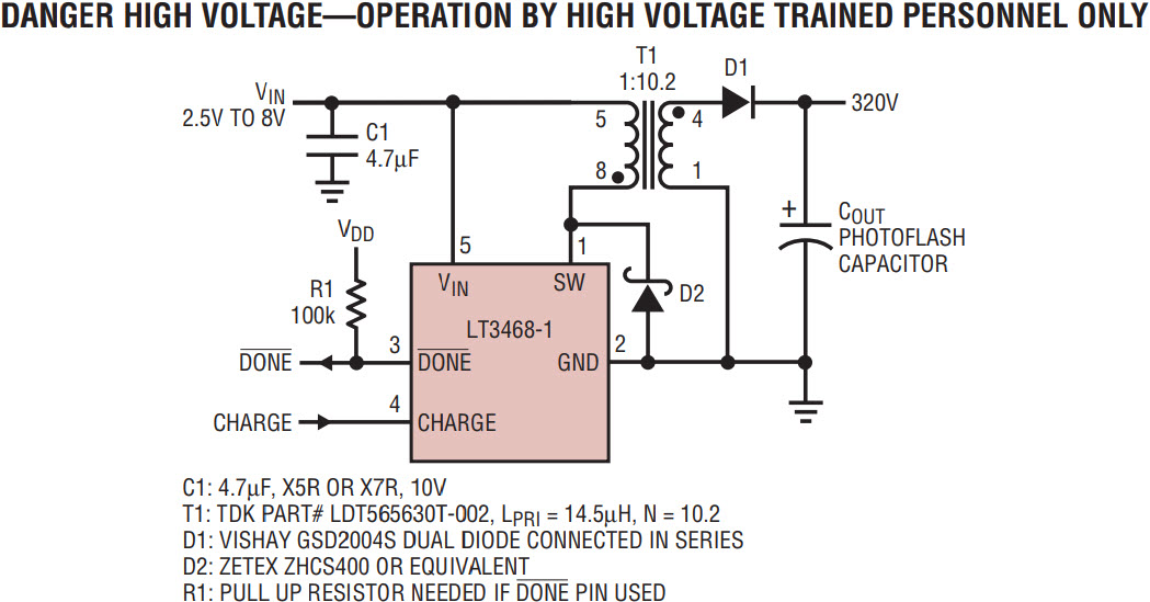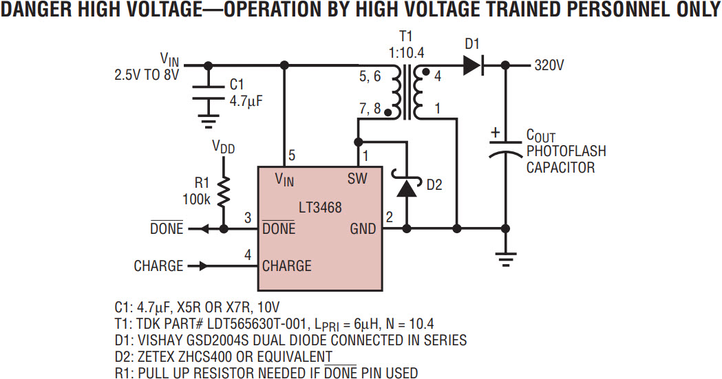 Figure 2a. LT3468-1 photoflash circuit uses tiny 3mm tall transformer.