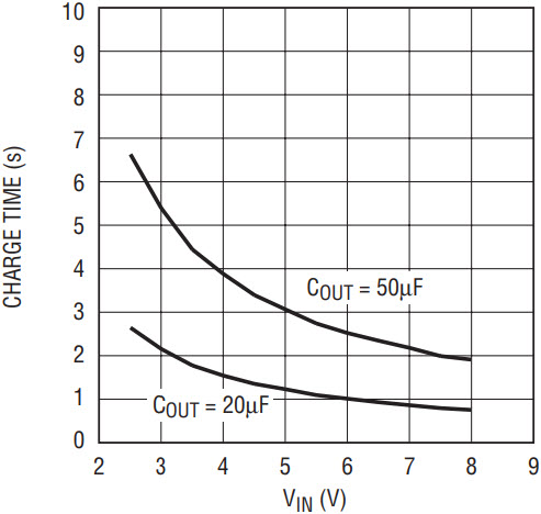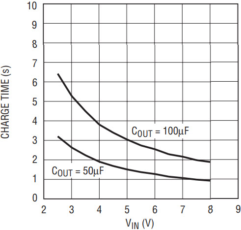 The LT3468-1 is a lower current version of the LT3468. Figure 2a shows a typical application circuit while Figure 2b shows the charge time. The input current for the LT3468-1 is typically 250mA, while that of the LT3468 is about 550mA.