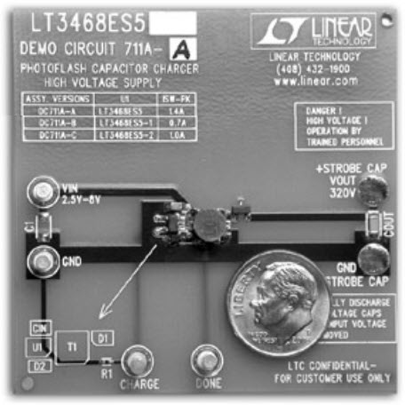 Figure 1c. The LT3468 makes it possible to fit an entire photoflash charging circuit into 80mm2.
