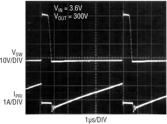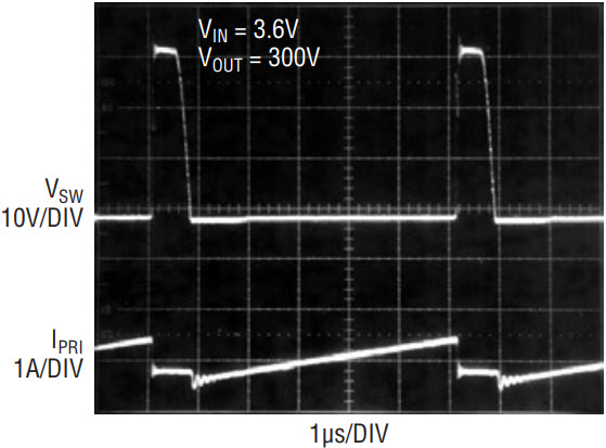 Figure 4d. LT3468-1 switching waveform at 300V output.