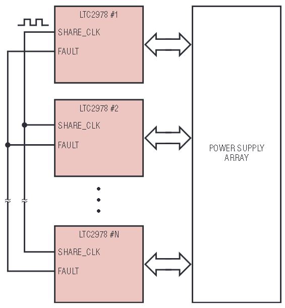 Figure 3. Multiple LTC2978s can be cascaded using only two connections.
