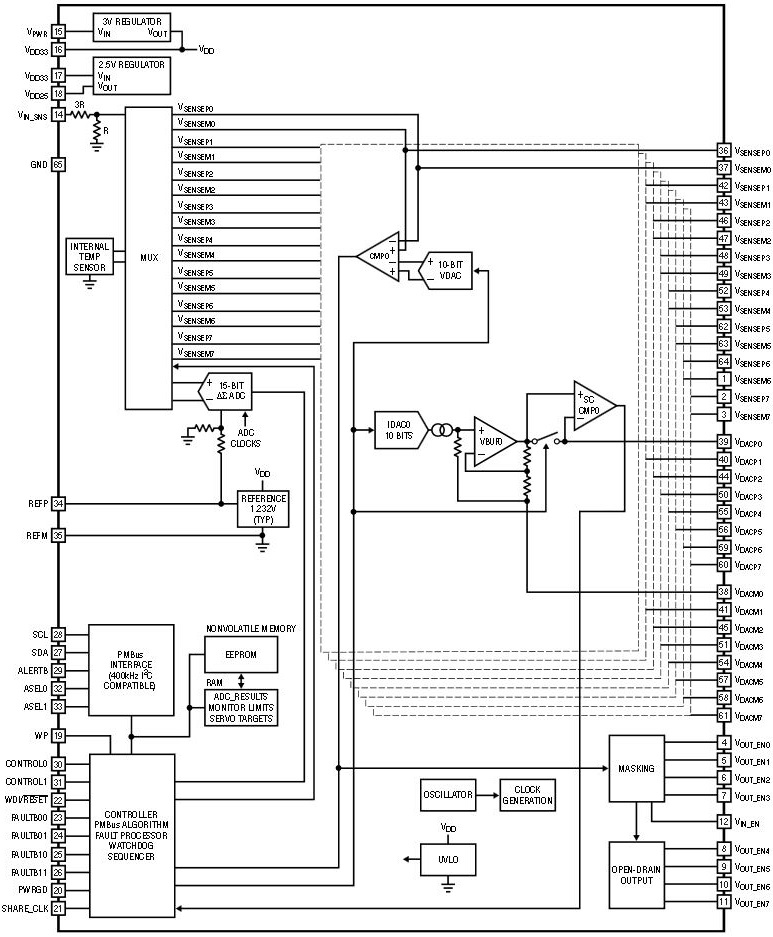 Figure 1. Octal power supply controller with PMBus communication. One channel is shown.