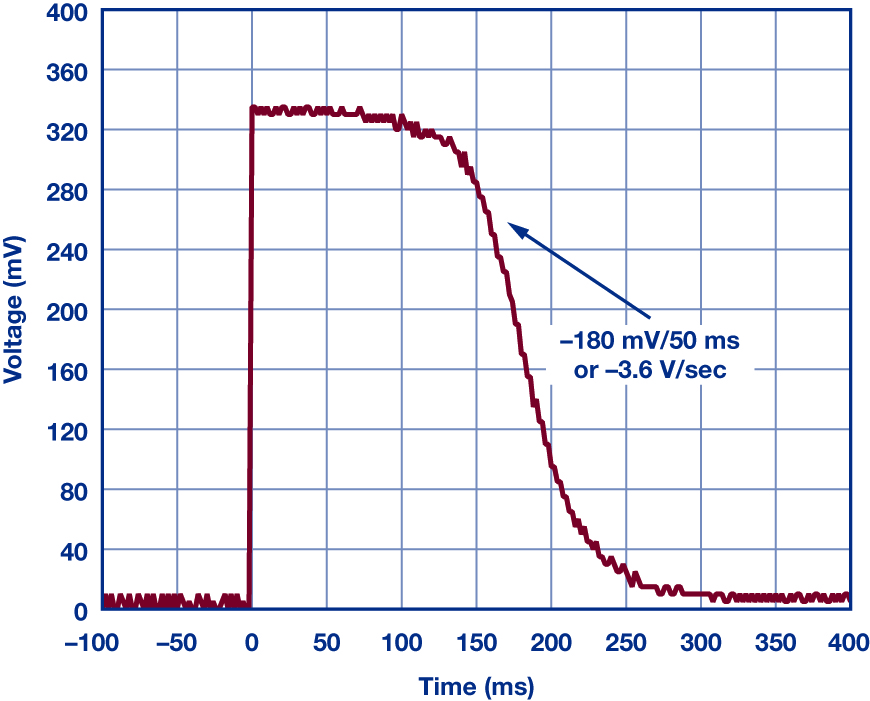 大的电容器 C2 与大的 RSENSE 共同决定了瞬变的压摆率,因而确定了由固定延迟引起的误差。采用较大 C2 所付出的代价是 I-V 测量所需的时间有所延长。
