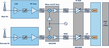 Figure 6. The signal chain shows the components employed in a typical wireless base station receiver.