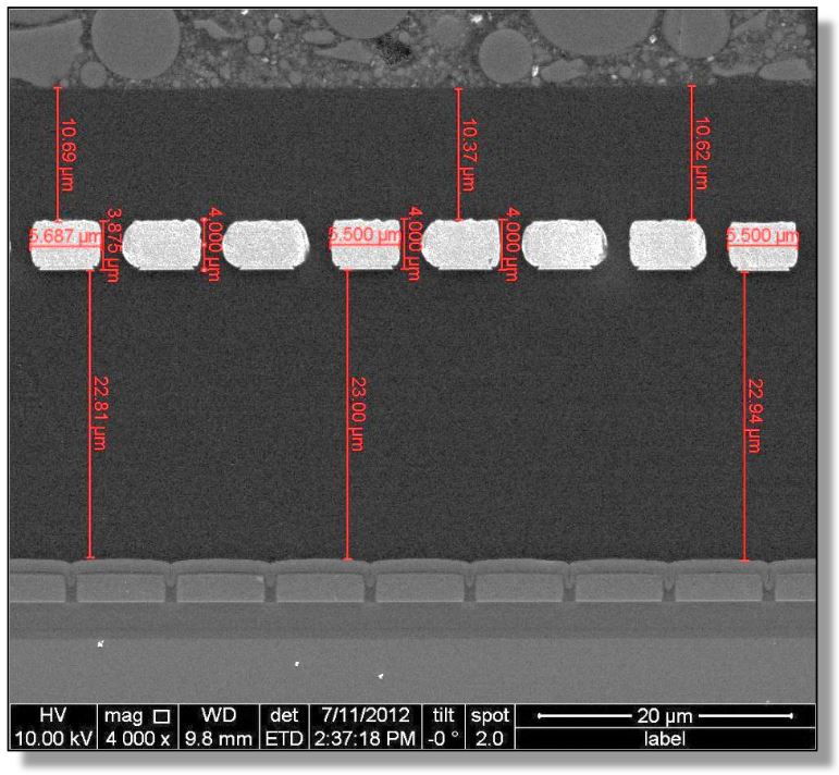 ADI公司通过部分放电以外的测试保证iCoupler®数字隔离器的工作电压。iCoupler数字隔离器在平面变压器线圈之间使用20 μm厚聚酰亚胺绝缘层,这是晶圆制造工艺的一部分(见下图)。这种制造工艺能以低成本将隔离元件与任何晶圆半导体工艺集成,实现出色的质量和可靠性。下面的剖面图显示了被厚聚酰亚胺层分开的顶部和底部线圈的匝数。聚酰亚胺材料用于绝缘已有多年的历史。过去十多年来,已有近10亿只iCoupler变压器投入使用。