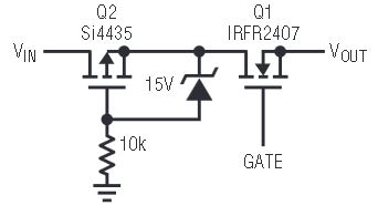 Low loss reverse blocking is also possible with a P-channel MOSFET, as shown in Figure 5. In both cases there is no need for the blocking MOSFET, Q2, to be rated at a voltage any higher than the anticipated negative input.